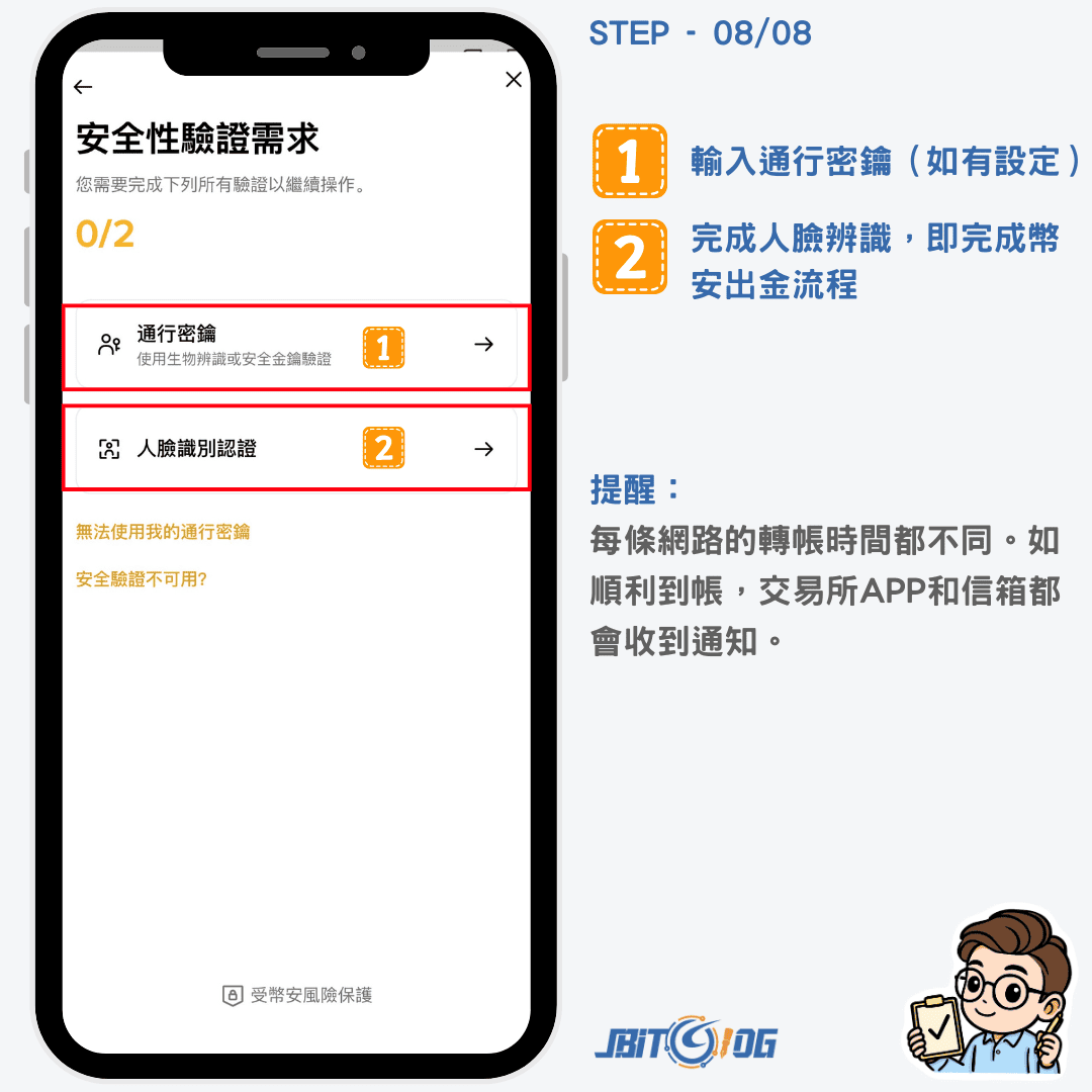 最後請再次確認出金資訊是否正確,如果沒錯,按「確認」。接著依序完成密鑰和人臉辨識設定,順利的話就完成幣安出金的流程。