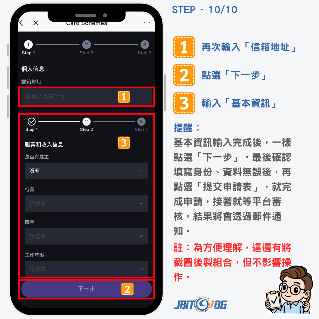 最後確認填寫身份、資料無誤後,再點選「提交申請表」,就完成 Bitget Wallet Card 的申請流程,接著就等平台審核,結果將會透過郵件通知。