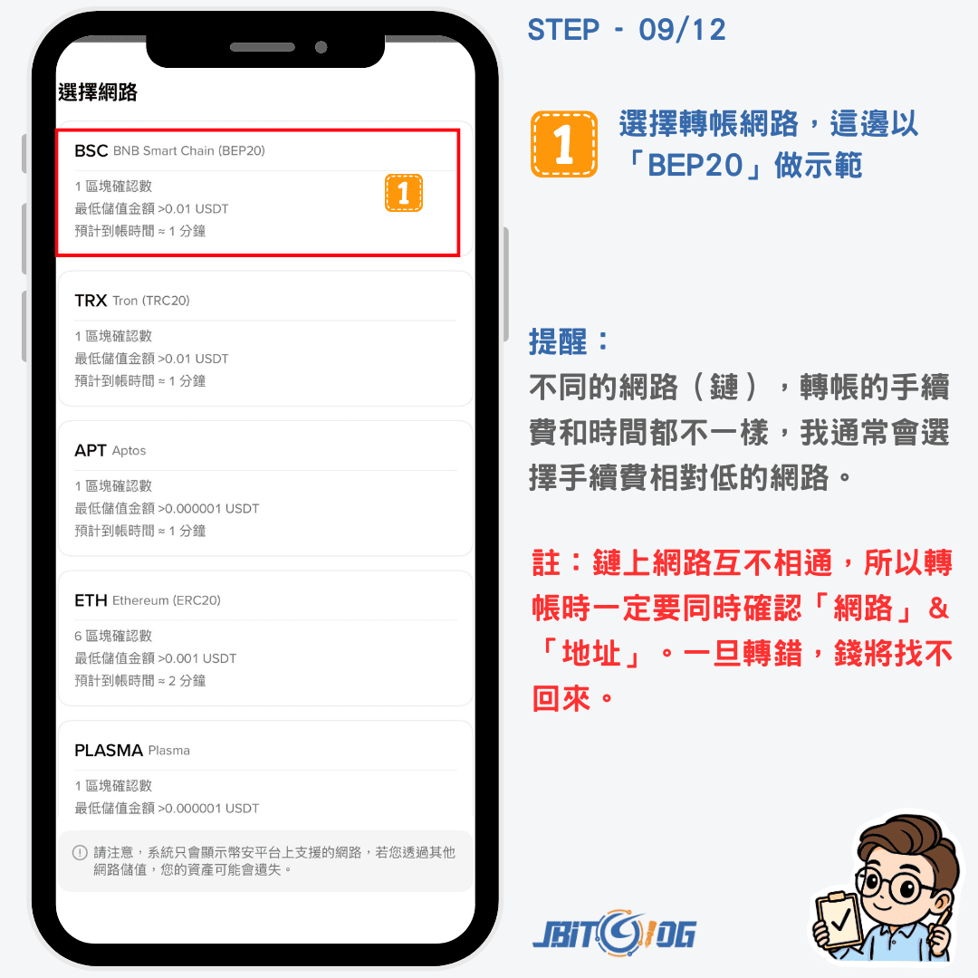 • 區塊鏈網路(例如 ERC20 / TRC20)要選對