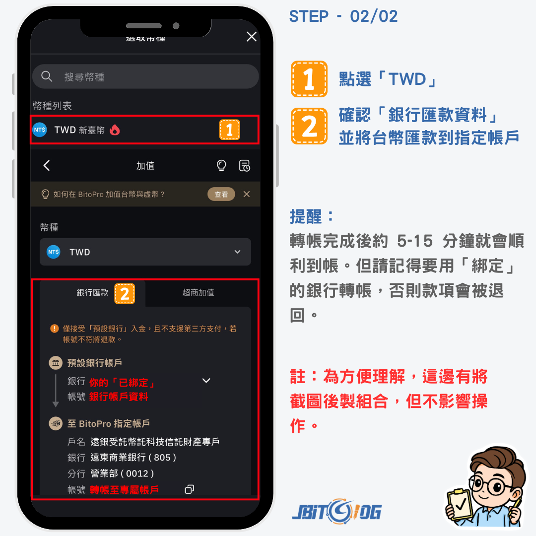 顧名思義,就是從你「綁定」的銀行帳戶,直接用「台幣」匯款到幣託提供的專屬入金帳號。