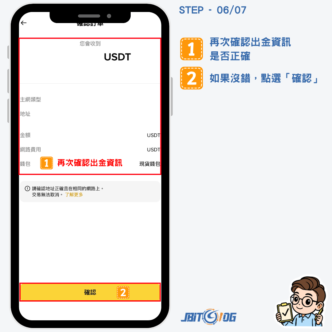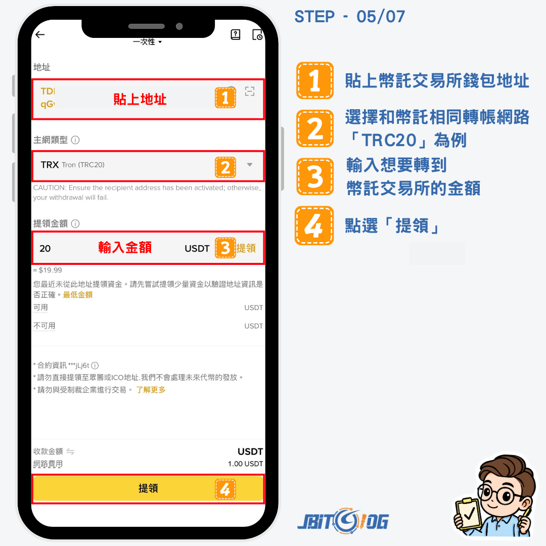 加密貨幣鏈上入金的本質,就是從其他交易所或錢包「出金」到幣託交易所,所以接下來的流程將用穩定幣(USDT),從「幣安」出金到「幣託」做示範。