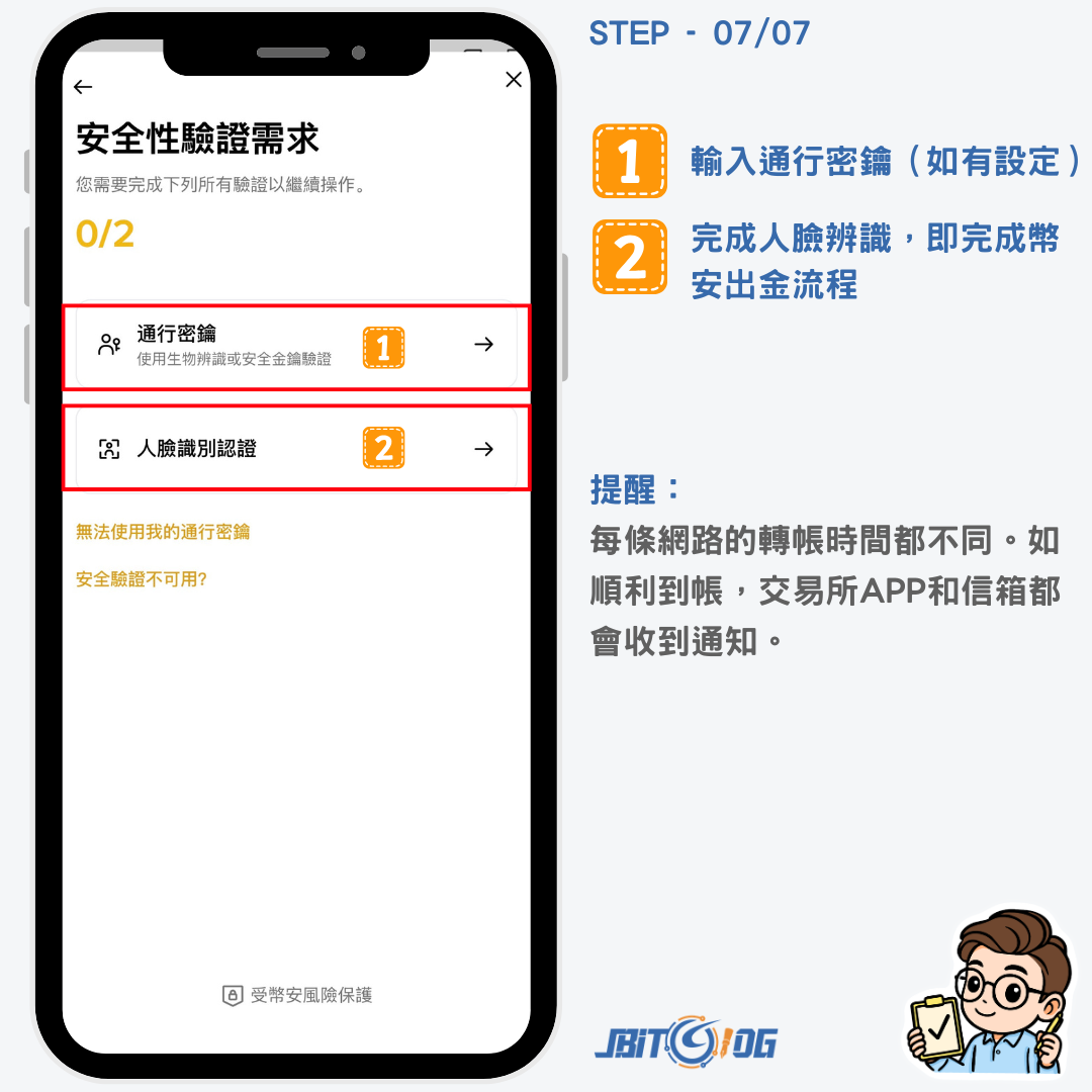 接著依序完成密鑰和人臉辨識設定,順利的話就完成幣安的出金流程。最後只要等,幣託交易所入金完成通知就好。