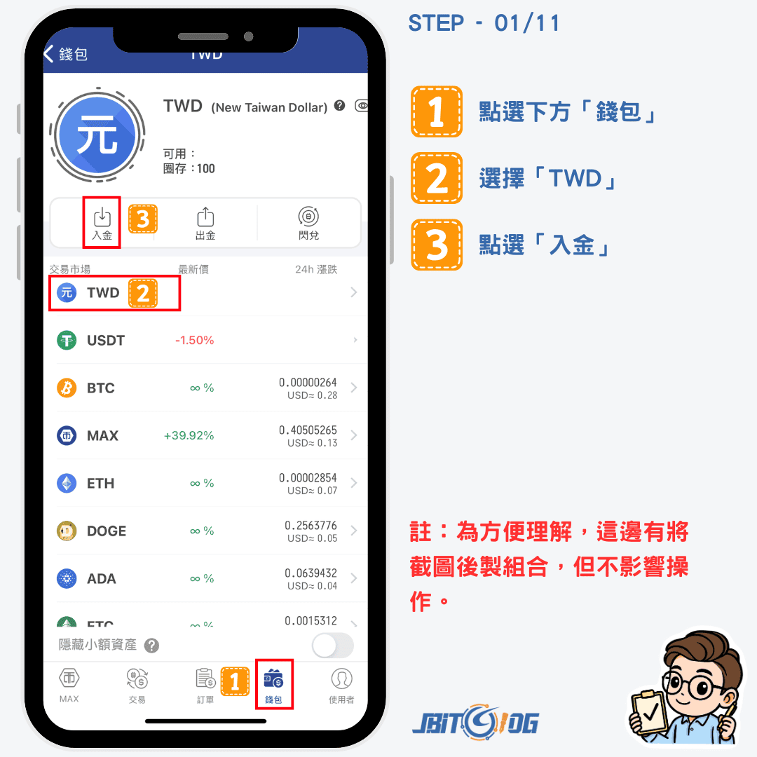- 台幣入金與買幣的成本透明