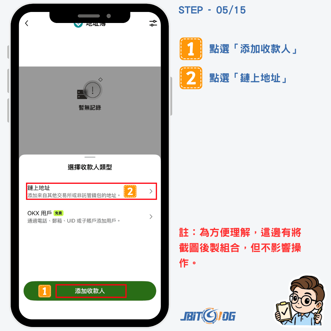 進入到地址簿畫面後,先點選下方的「添加收款人」後,在選擇「鏈上地址」。